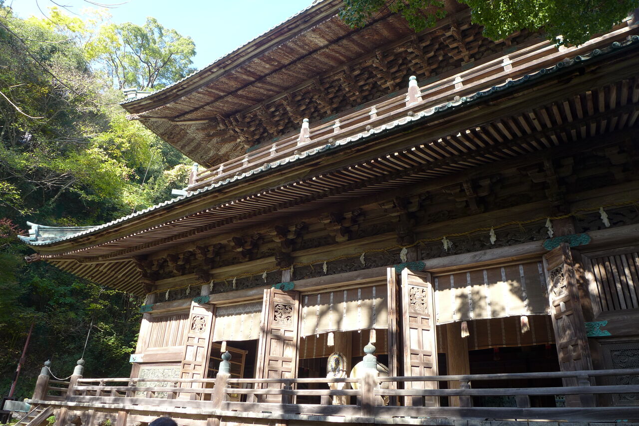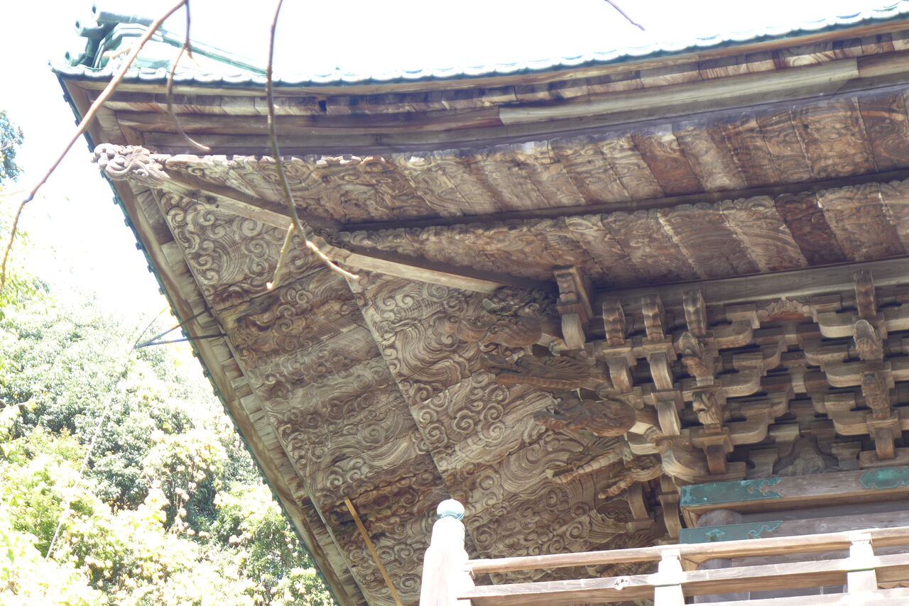 近づいて気づいたのは、軒下に一面の彫刻があることです。何が彫られているのでしょうか?お参りを済ませた後に、拝見させていただきます。軒下に彫られた雲龍