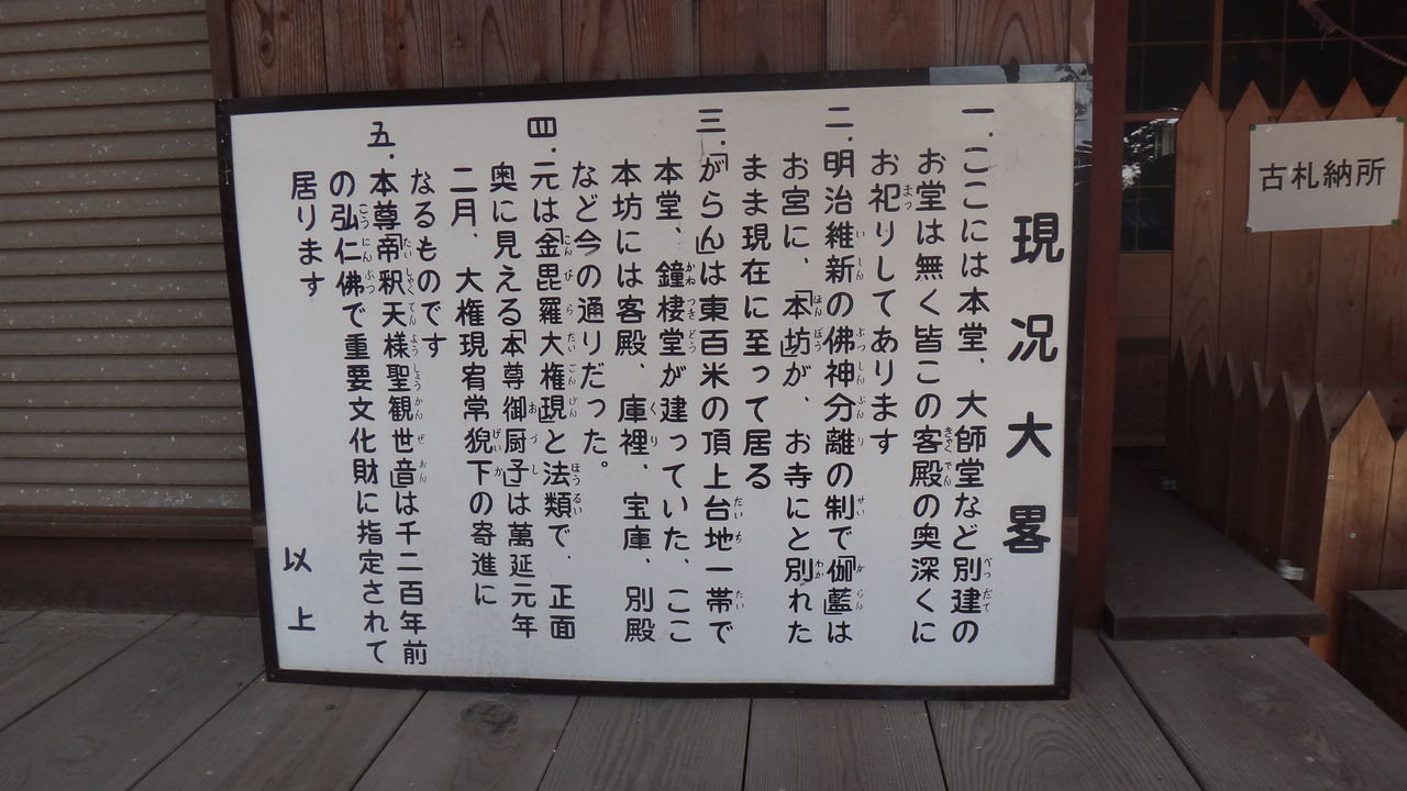 内 諭長法寺住職 三宅 栄厳護法神金毘羅大権現勧請之義 御聞置相成候二付ハ左之条々ヲ遵守スベシ此段相達候事真言宗 法務所印明治廿四年一月廿六日第壱条金毘羅大権現者仏家勧請之護法神タリト雖モ 従前象頭山金毘羅大権現卜公称之神社アリシヨリ 目下金刀比羅神社卜同一ノ物体ナリト意得ノ信徒等有之候 テハ却テ護法神勧請ノ本旨二背馳シ且神仏混淆廃止ノ朝旨ニモ戻り 甚夕不都合二候 宝前二於いて法式ヲ執行シ信徒之為メニ祈祷等ヲナサント欲セハ必ス先本宗ノ経軌ニヨリテ事務シ 毫モ神社前二紛敷所為など供物等不相備様屹度可致事第貳条本堂内二勧請之尊体ハ固ヨリ 経説ニヨリテ彫刻スベキハ勿論 萬一他二在来ノ尊体ヲ招請スル訳ナレバ授受ノ際 不都合無之様注意シ 尚地方廳エハ順序ヲ践テ出願シ 其許可ヲ得テ 該寺シ内務省ヘモ可届出筋二付 此旨相意得疎漏之取計方無之様可致候事 以上