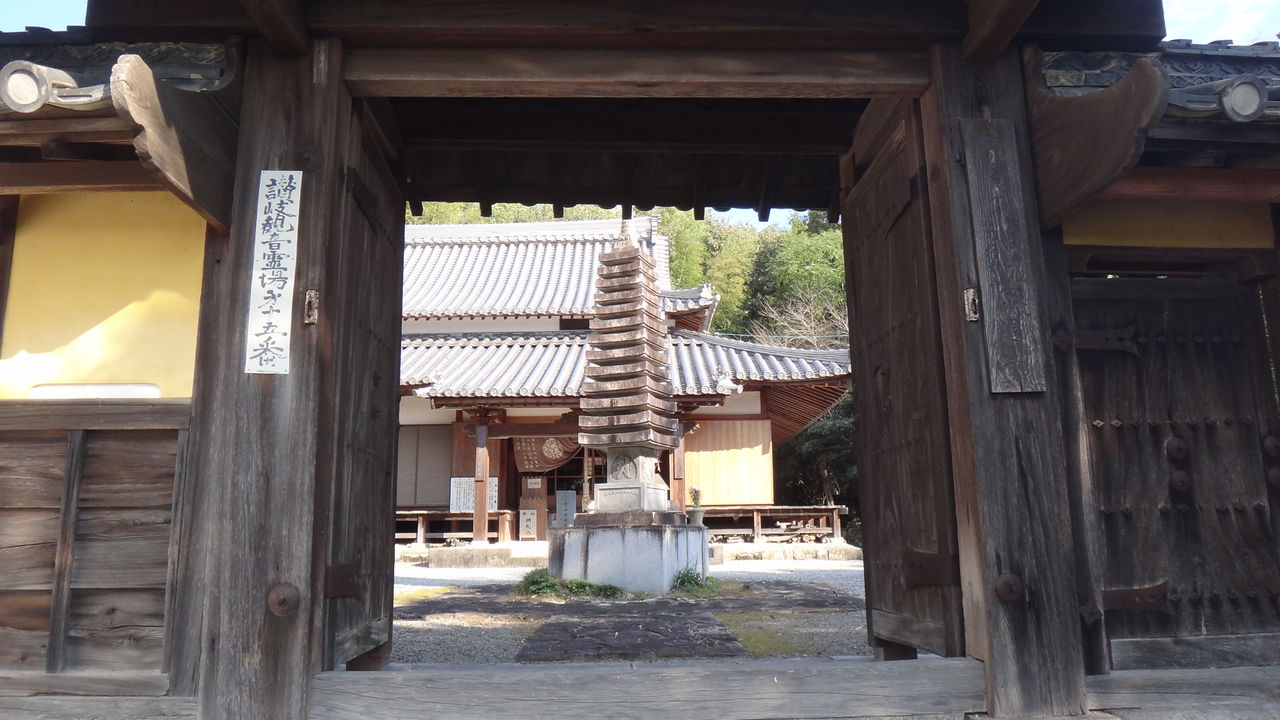 このお寺は、鎌倉時代に善通寺の復興に活躍した宥範僧正が隠棲のために建立されたと伝えられ、もともとは丸亀市亀水町とまんのう町の境にある上池の南西にあったようです。広い伽藍を持っていたとされ、『仲多度郡史』には南門から現在の高篠小学校に至る県道が門前町であり、付近からときどき古瓦などを掘り出すと記されています。