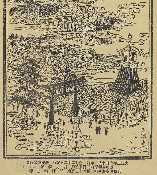 しかし、明治の廃仏毀釈で廃寺となりました。この寺の唐破風造りの玄関が寺町の積善坊に移築されています。その差物上部には生駒家家紋の「生駒車(波引車文)」の彫物があります。この家紋は『讃羽綴遺録」よると文禄・慶長の役以降に生駒家が使っていたものです。誉田八幡宮別当寺の城林寺は、生駒家ゆかりの寺であったことがうかがえます。