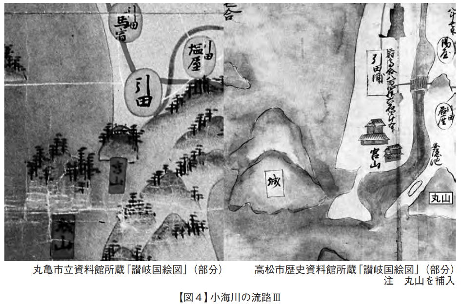さらに貼紙が付けられ、朱書で光明寺の石高が書かれていますが、水田ではなく「下畑」とあります。「岸上」は、その名の通り金倉川の左岸の「岸の上」の丘陵地帯に立地するエリアです。金倉川からの取水ができないために、灌漑水路の設備が遅れていたようです。