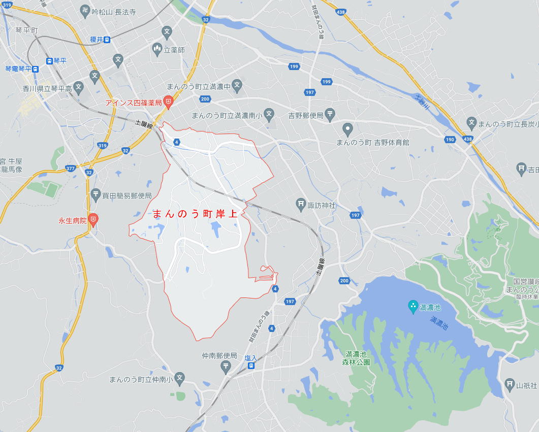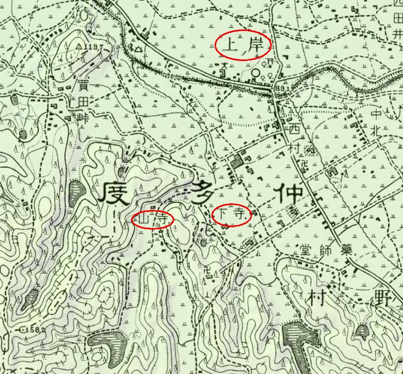 金倉川の南側に「岸ノ上」と見える