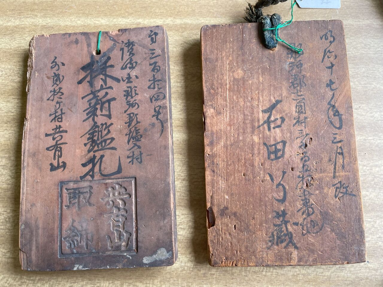 こうして、里山は春が来て新芽が芽吹く頃になると周辺の村々から農民達が入り込み、木々の枝を刈り取り、それを背負って田んぼに敷き込むことがどこでもおこなわれるようになります。そして、それが多ければ多いほど増収につながるのです。農民達は競って里山に入り、木々の枝を刈り取ったのです。多度郡の農民達の入会地は、はるか南の讃岐山脈の麓でした。朝早くに出発して、小枝を刈り取り、それを背負って暗くなった道を家路に急いだのでしょう。その際に、番所では木札を見せ、決められた銭も支払いしました。そのために事前に発行されていたのが採薪鑑札です。