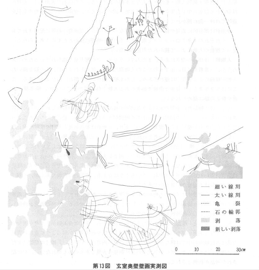 線刻画が、どの段階で刻まれたかについては研究者は次のように考えています。