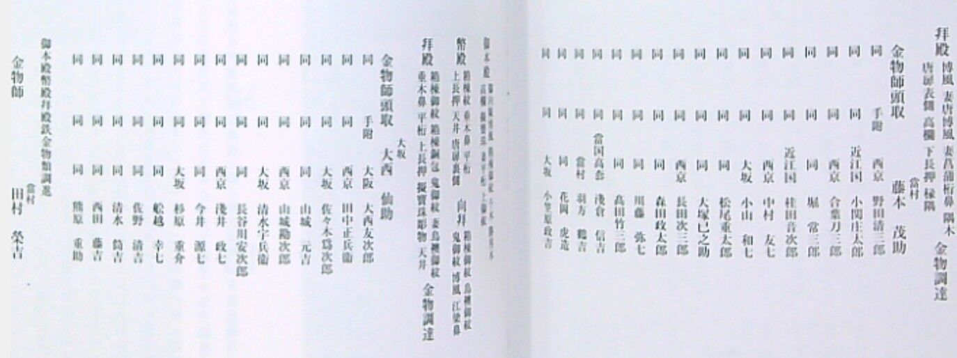②しかし、金物師、檜皮師(ひわだし)、石工のなどの各職種については、地元の職人だけでは対応できずに、他国の職人に発注しているものもある。