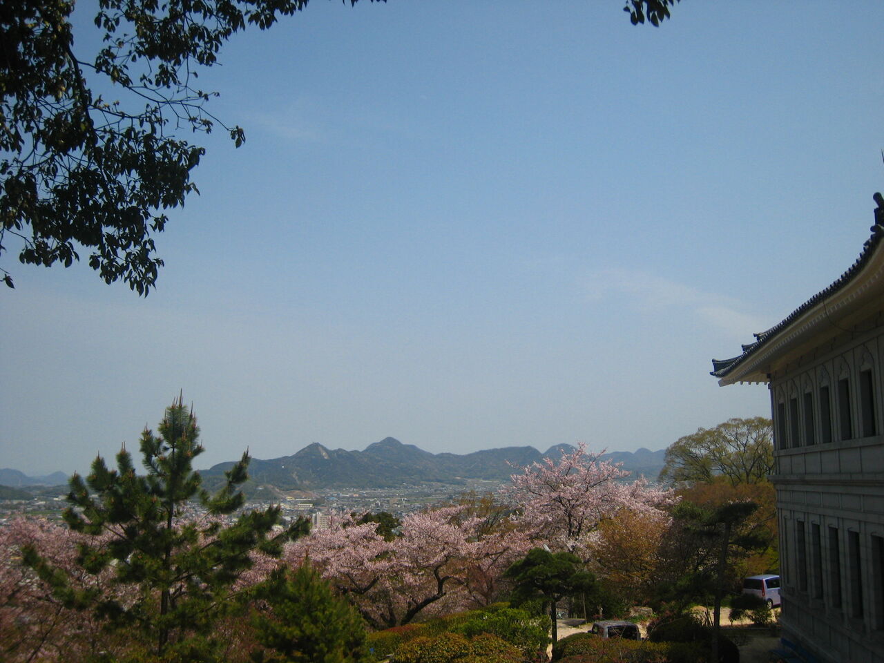 その下を通行できるようになっていて、参拝者はここを通って、拝殿を何回も廻って参拝する。拝殿右の石の玉垣からの眺望は絶景で、多度津、丸亀の沖、備前の児島まで見渡すことができる。