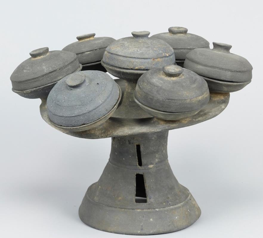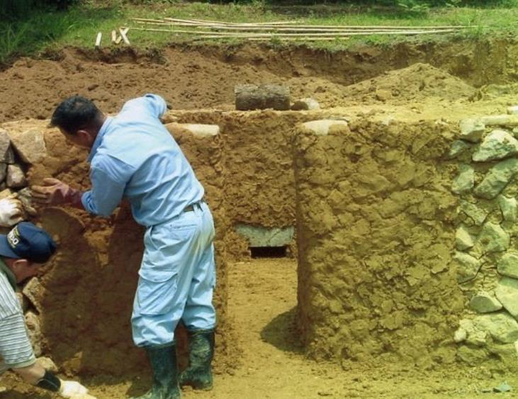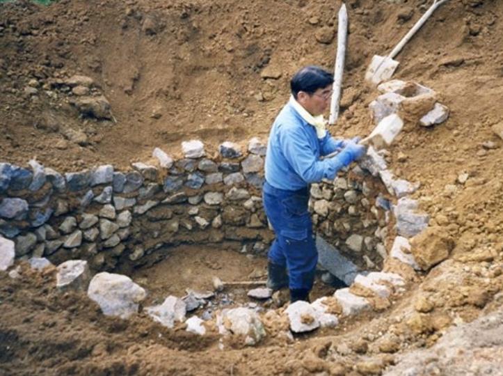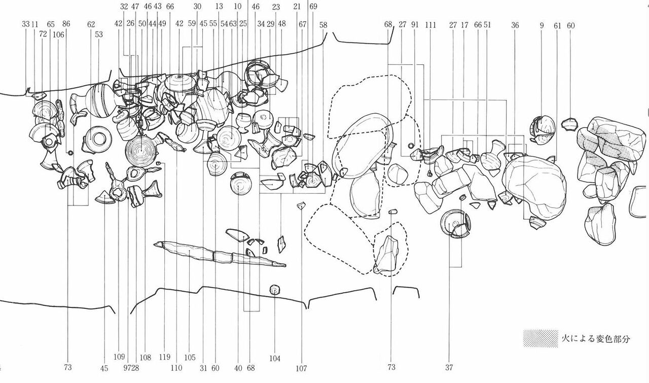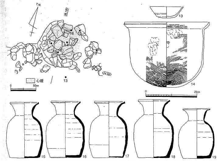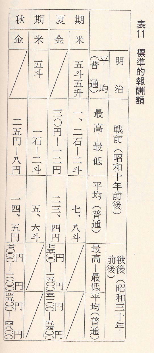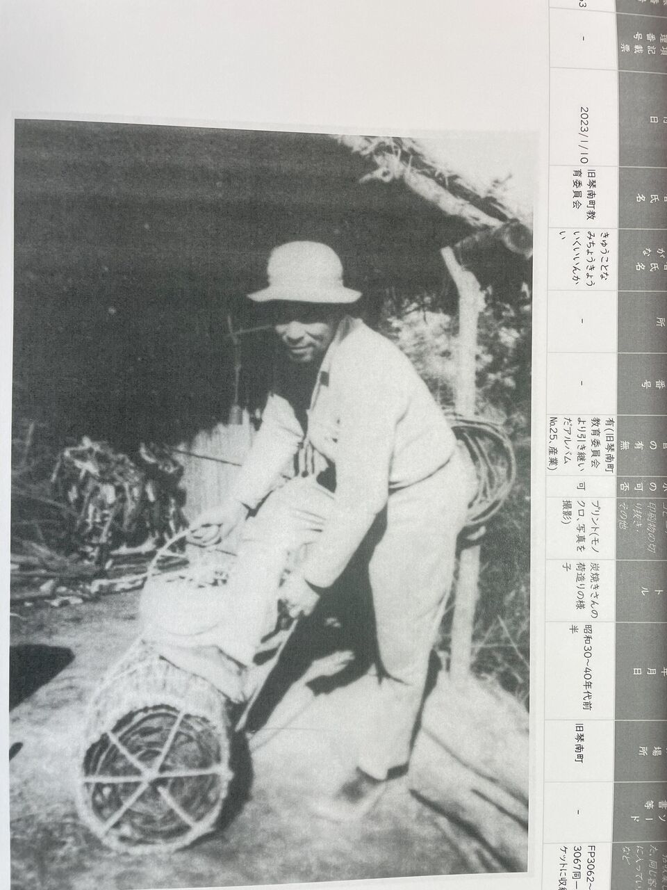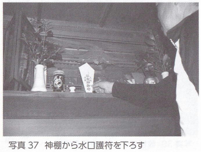 13:50 踊り開始(水の踊り→綾子踊→かえりの踊り)地唄(一番右で座っている)麻の上下に小脇差(こわきさし)姿で、一文字笠をかぶって、青竹の杖を持ちます。台笠(青い笠)烏帽子をかぶり、神職姿で台笠を持ちます。台笠の下は神聖な空間とされました。拍子龍王に供える榊を(さかき)持って入場します。黄色い大きな団扇を持ち、芸司を支える役割を果たします。芸司 (げいじ)全体の指揮者です。もともとは踊りを伝えた芸能伝達者の僧侶でした。大きな団扇には、日と月が描かれています。太鼓 袴(はかま)姿に白たすき掛けで黒足袋です。鉦 僧侶姿で、白衣に、黒い袈裟を架けて鉦を持ちます。風流念仏踊りの影響がうかがえます。笛 黒紋付の羽織袴(はおりはかま)で、白足袋に草履姿です。鼓 裃(かみしも)、袴(はかま)姿で小脇差しを指します。側踊(がおどり)