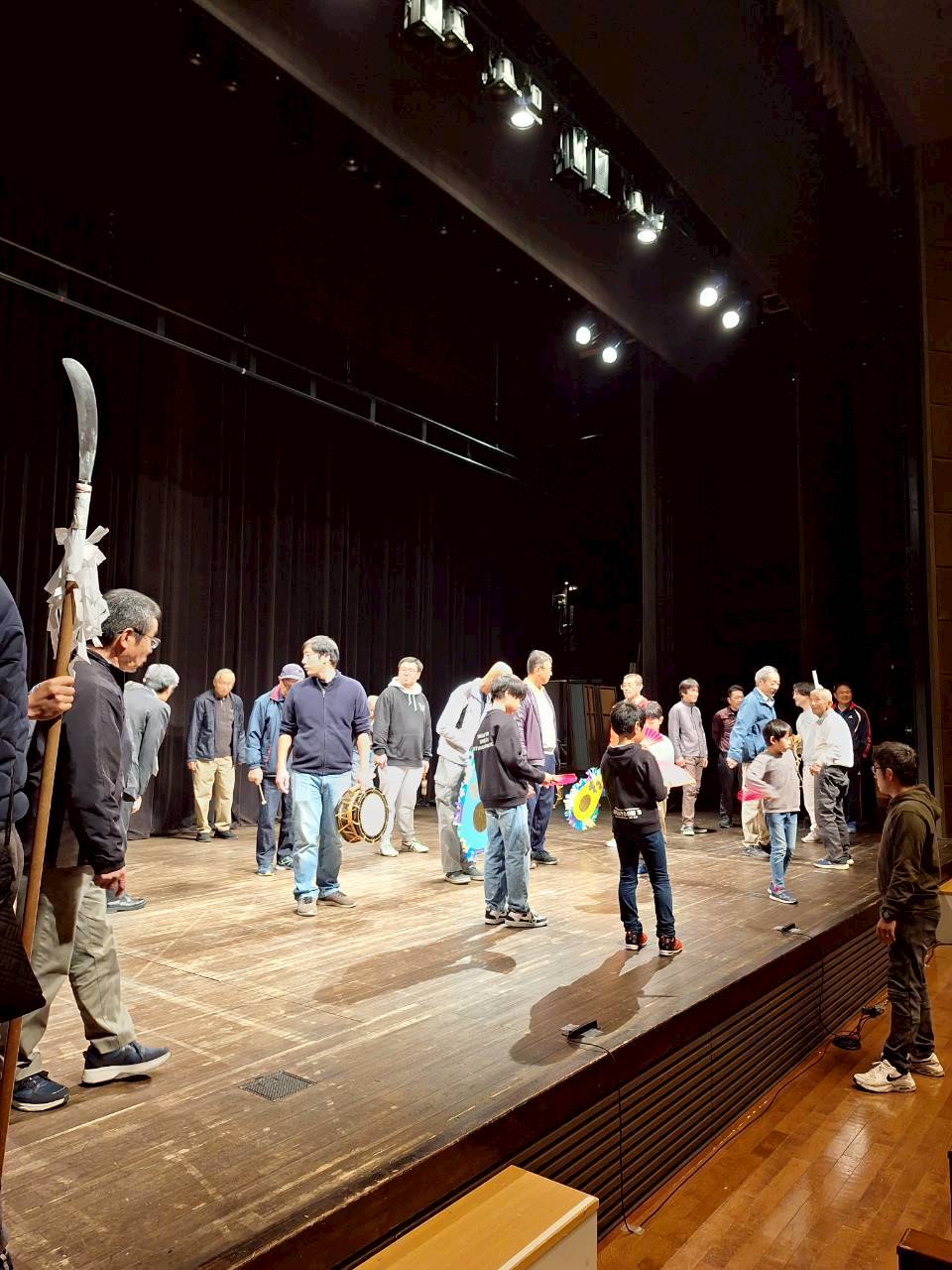 8:00 佐文公民館集合・荷物積込8:30 出発 (マイクロバス2台33名)9:40 サンポート到着 搬入10:00 リハーサル(入庭隊形・位置・音量確認・鳴物)10:45 昼食 → 終了後に着替え開始13:20 入庭隊形で待機13:30 入庭(いりは)14:10 退場 着替え・撤収15:00 サンポート出発16:00 佐文公民館帰着(片付終了後解散)