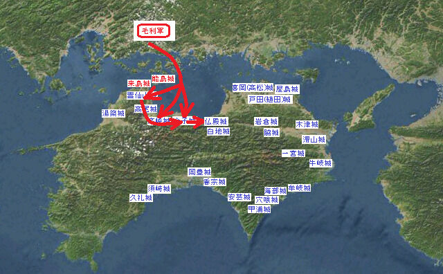 淡路については、16・17日に先陣が先勢が出陣し、18日に我等も淡路に渡海し、所々に放火しながら、洲本(津名郡)まで押詰った。(中略)