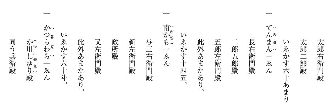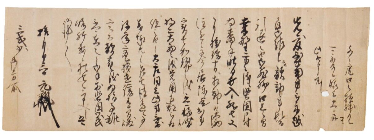 猶以去廿四日 財田よりの御書も相届申候、去廿六日御書昨日三日到着、得其意存候、一(1)隣国而々儀、悉色立俵相申趣、香中(香川信景)始証人等被相渡、其外之模様条々、無残方相聞申候、是非之儀更難申上候、十河一城之儀も如此候時者、可有如何候哉、家中者心底可被難揃と申事候、(2)昨日此御書到来、即刻先(一宮)成相ハ乗物にて(那東郡)桑野迄被越候、所労儀もしかじかなく候へとも相進候、(3)御屋形様(旧阿波守護家細川真之)御進発事、此上者不及用捨事候間、可致御供心得候、常々さへ御いそきの事候間、以外御いらての事候間其覚悟候、兎角無人体見所之儀も如何候へとも左候とてためろふへきニあらす候間、先乗野迄御供いたすへく候、但其方今御一左右可待申覚悟候、(4)牟岐辺事、此刻調略事候、成相申談相越候、(5大栗衆手遣事、急度可申遣事、去廿八日太栗衆此方者相加佐那河内不残放火候時者能打入候、恐々謹言、(香宗我部)香左 親泰(花押)十二月四日桑名殿ヘ