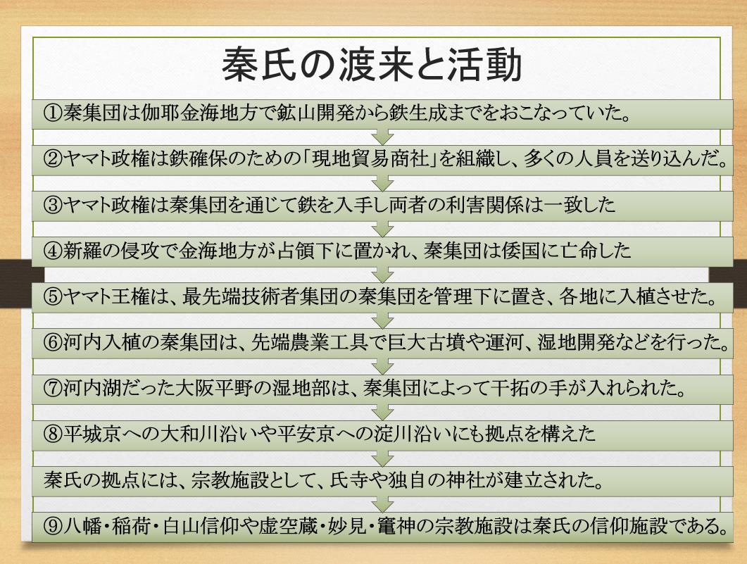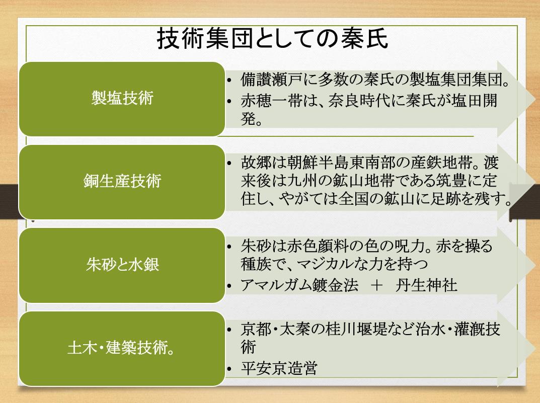 韓半島から渡来した技術者集団を管理下に置いた勢力が「産業殖産」を次のように展開します。