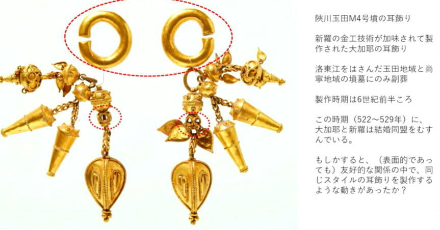 そして,そこでは鍛冶関係だけではなく,馬飼や玉作,紡織や木工といった各種の手工業生産の痕跡が見えて来ます。これらは韓半島からもたらされた当時のハイテク技術です。その背景には活発な人的交流が幾重にも積み重ねられていたことがうかがえます。ただの交易だけでなく技術や知識の導入も意図していたと研究者は考えています。