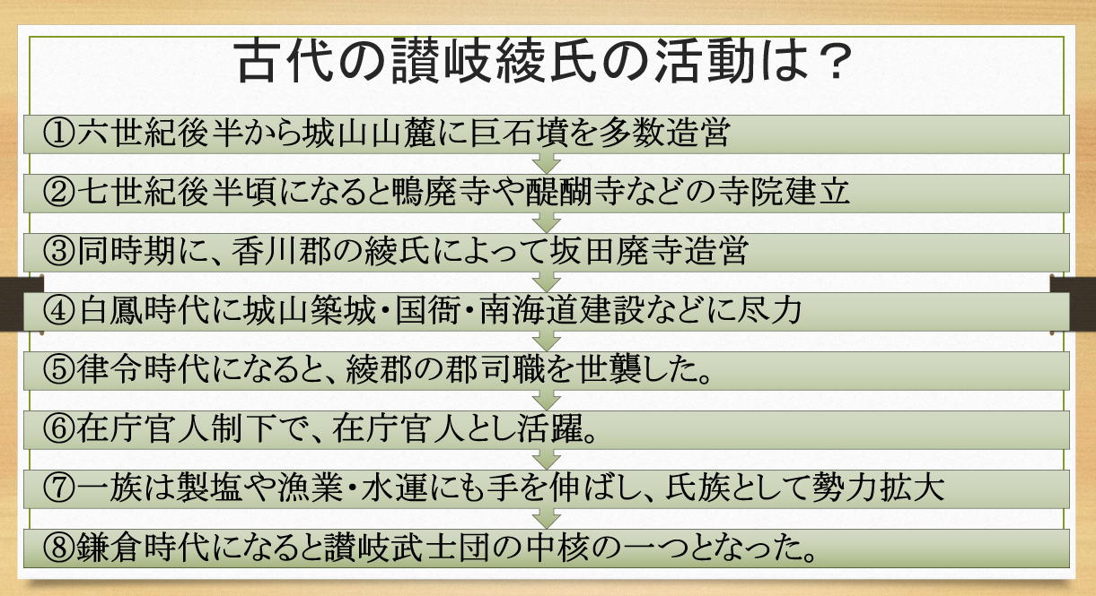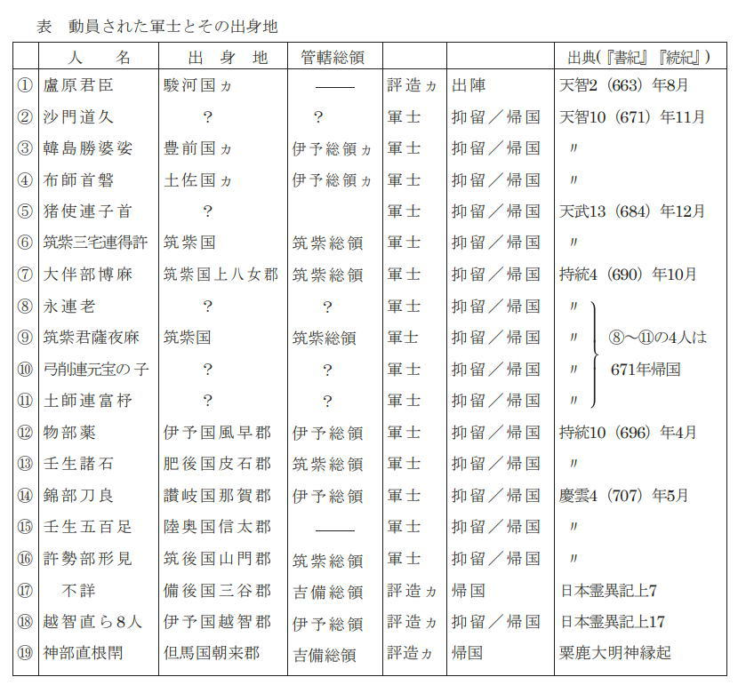 ここからは、広範囲に多くの人達が百済救援戦争に動員されていたことが分かります。同時に、讃岐であれば、綾氏や佐伯直氏などの評造(元国造、後の郡司)クラスのメンバーは、ほとんどが従軍したことがうかがえます。