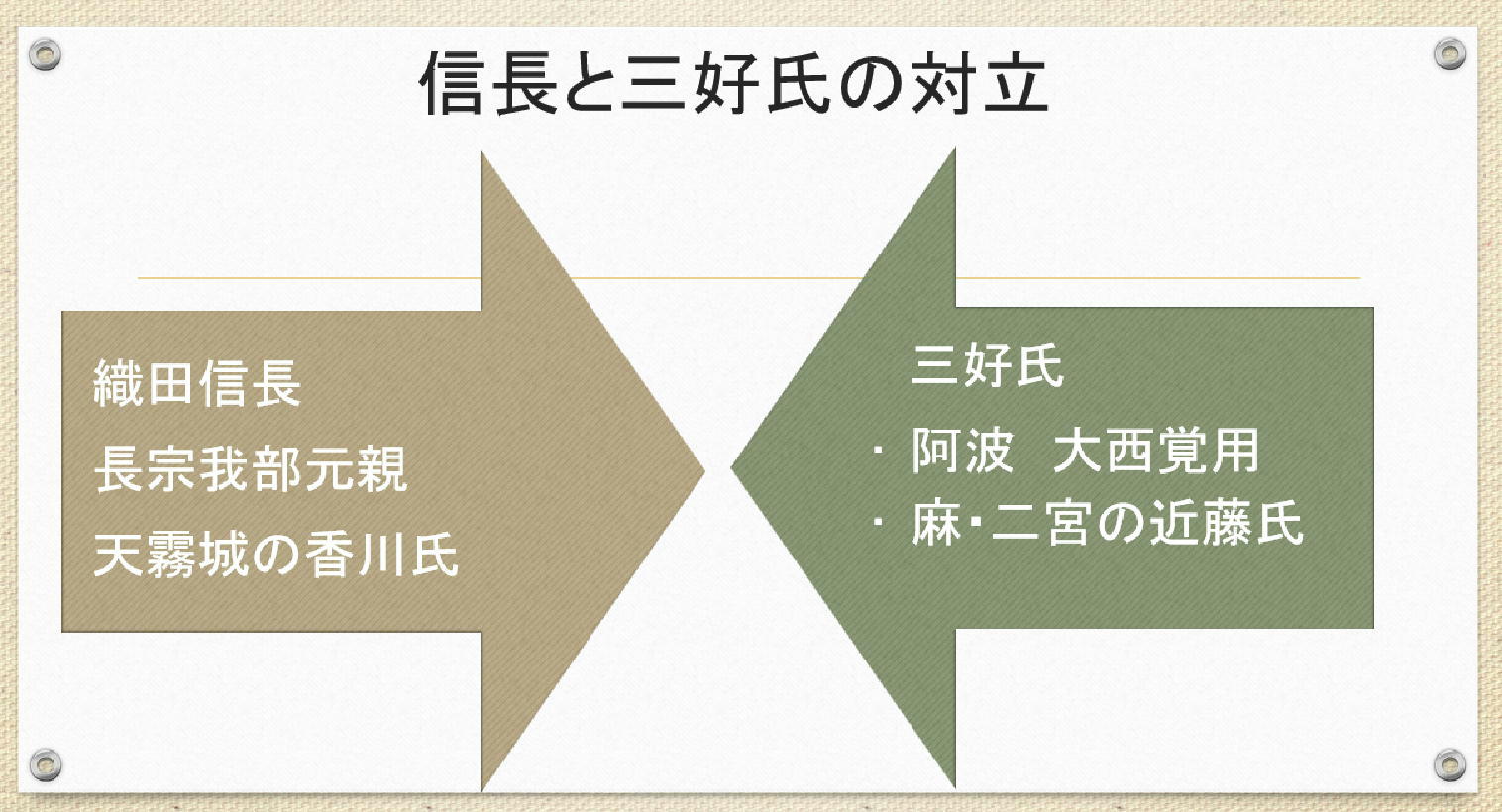 三好氏を支えていた三好義賢、長慶が亡くなり、その後を継いだのが長治です。そんな中で元親に阿波進出の口実を与える事件が、阿波の南方と海瑞で同時に持ちあがります。