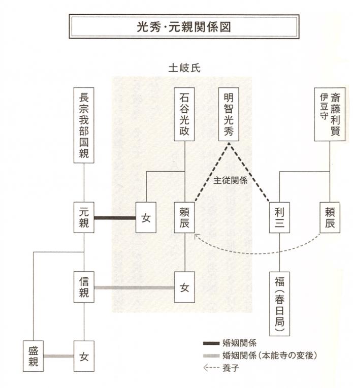 元親の正室は美濃の名門土岐一の石谷頼蔵の妹で、頼蔵は明智光秀の重臣です。