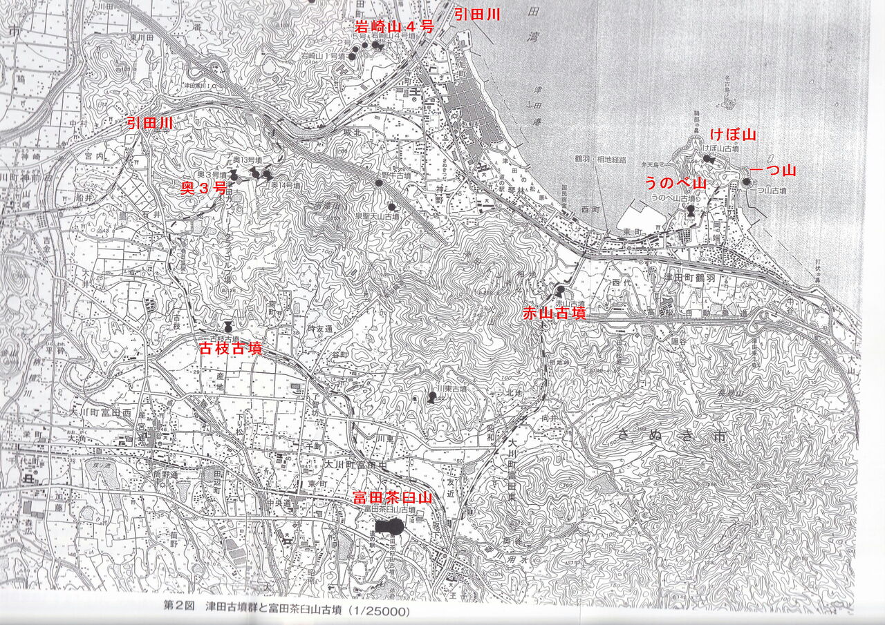 以前に「岩崎山第4号古墳発掘調査報告書2002年 津田町教育委員会」にもとづく津田古墳群の性格について読書メモをアップしておきました。それから約10年後に「津田古墳群調査報告書」が出されています。これは周辺の古墳群をほぼ網羅的に調査したもので、その中で見つかった新たな発見がいくつも紹介されています。津田古墳群の見方がどのように変化したのかに焦点を当てながら見ていくことにします。テキストは「津田古墳群調査報告書 2013年 さぬき市埋蔵物調査報告書第11集」です。